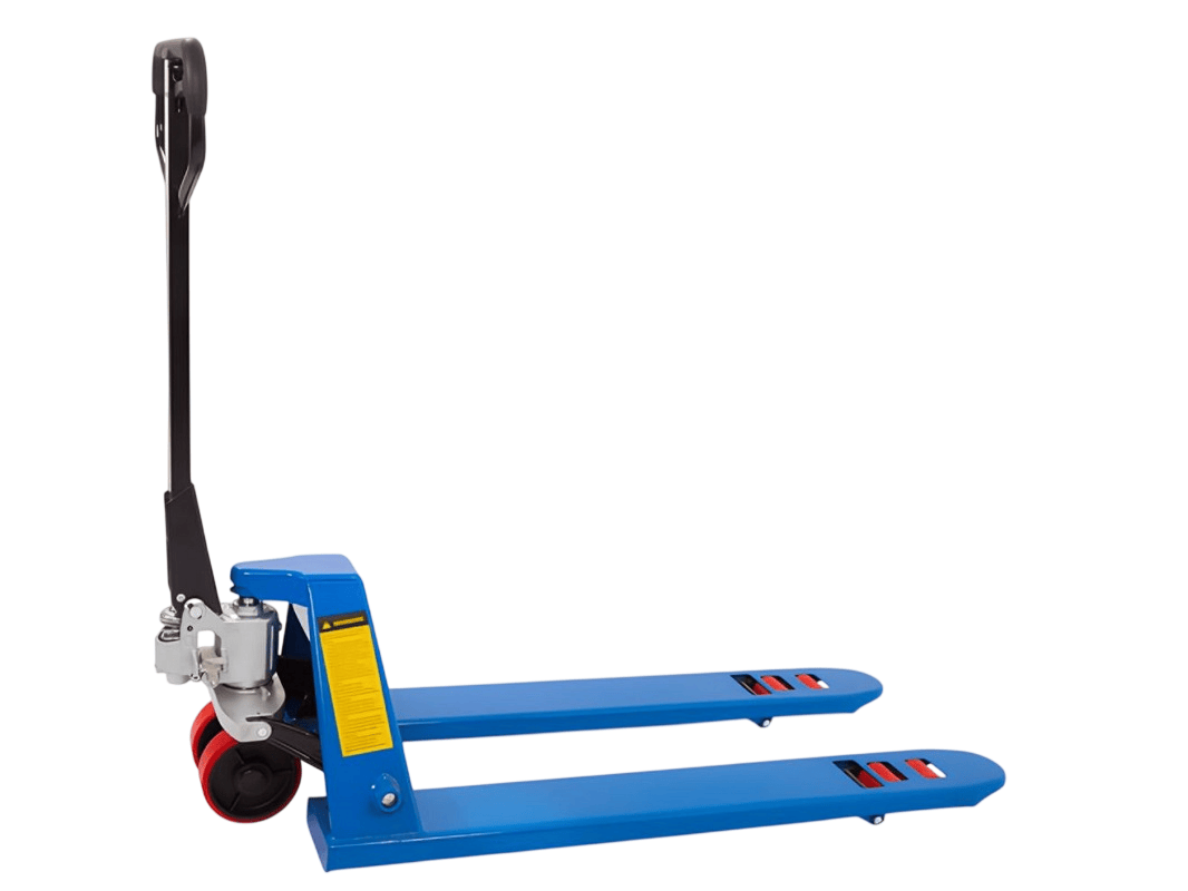 Вилы тележки дополнительно усилены по всей рабочей зоне, что придаёт технике прочность и защищает от деформации, позволяя работать с грузами в интенсивном режиме. Полиуретановые колёса обеспечивают плавность хода и выдерживают длительную нагрузку, минимизируя скольжение и шум. А закрытые подшипники продлевают срок службы колёс и роликов, защищая их от загрязнения и вымывания смазки.