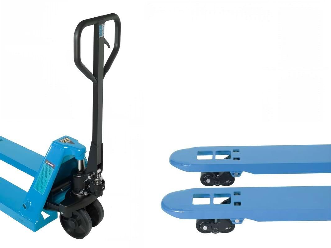 Вилы тележки дополнительно усилены по всей рабочей зоне, что придает технике прочность и предотвращает деформацию. Это позволяет работать с грузами в интенсивном режиме.
