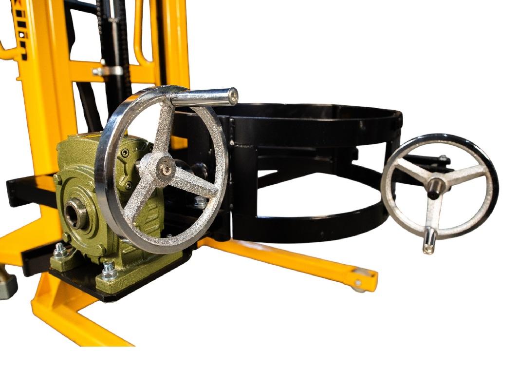 С помощью этого штабелера вы сможете поднимать и удерживать бочку на нужной высоте, которая достигает 1950 мм. Благодаря специальному механизму, вы сможете наклонять и вращать бочку для более удобного переливания жидкостей. Эта функция отличает его от обычного гидравлического штабелера.