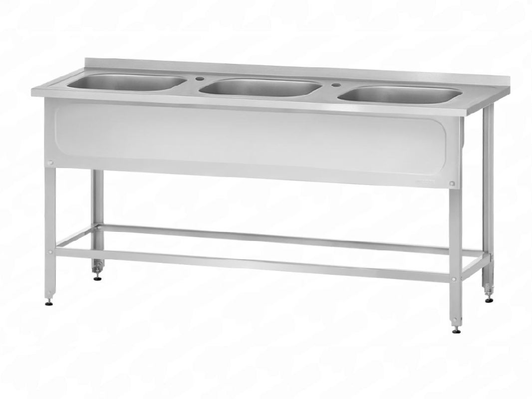 Моечное отделение выполнено из нержавеющей стали AISI 304 с толщиной металла 1 мм. Столешница изготовлена из пищевой нержавеющей стали AISI 430 в защитной пленке. Дополнительно устанавливаются съёмные полки для удобного хранения, как и в основных элементах применяется пищевая сталь AISI 430.