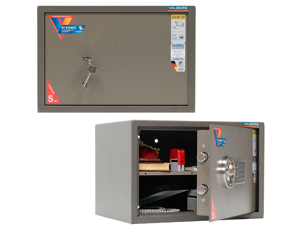 Мебельный сейф VALBERG ASM-30 KL/ASM-30 EL предназначен для сохранения ваших ценностей в любых условиях (дом, офис). Обеспечивает защиту от взлома согласно ГОСТу (55148) класс 1S. Сами сейфы простые в использовании, что обеспечивает им большую популярность. Качественный материал в совокупности с толстыми стенками обезопасит ваши ценности. Усиленная лицевая панель в 5 мм. Порошковое покрытие позволит защитить сейф от воздействия окружающей среды, а также повысить прочность по отношению к ударам.