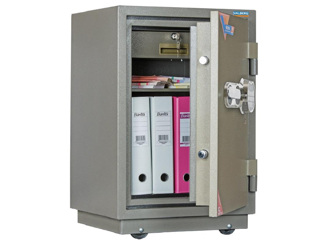 Вместо полок в сейфе предусмотрен выдвижной лоток. Термоактивные прокладки обеспечивают огнестойкость по степени защиты 60Б, что гарантирует сохранность документов при пожаре даже при температуре 600 °С в течение 60 минут.