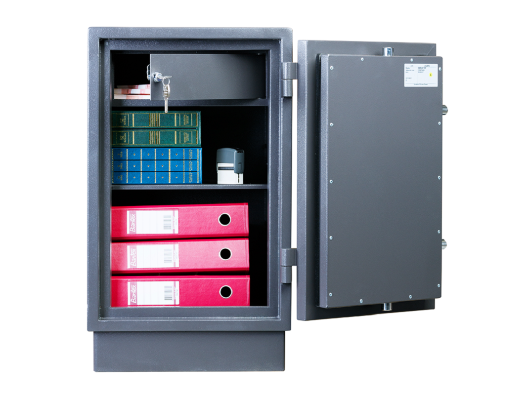 Предназначен для защиты документов и ценностей. Сейф с толстыми стенками хорошо справляется со своей задачей. Соответствует всем требованиям Федерального закона «Об оружии». Линейка «Кварцит» — одна из самых популярных, качественных и надежных сейфов, обеспечивающий защиту от взлома. Взломостойкость 1 класса, надежная защита от нежелательного проникновения, соответствует ГОСТу 50862. Есть полка для удобного хранения. Ригельная система запирания повысит надежность, а замок с защитой от высверливания обеспечит защиту от разных способов взлома. Очень тяжелый, что затруднит попытку кражи сейфа со всем содержимым, тяжесть достигается путем заливки специальным бетоном. Сейф имеет небольшой подъем от пола (демпферная юбка). Укомплектован специальным отделением (трейзер). Также установлена защита от выбивания замка, при срабатывании блокирует ригельный механизм. Качественный немецкий замок KABA MAUER. Термоактивные прокладки обеспечивают огнестойкость по степени защиты 30Б (при температуре 600 °С в течение 30 минут гарантирует сохранность документов при пожаре).