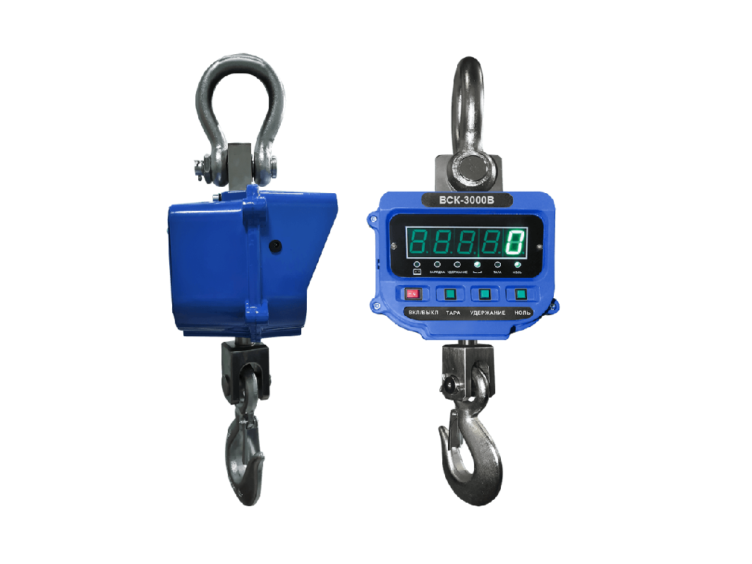 Электронные крановые весы ВСК предназначены для точного статического взвешивания грузов, перемещаемых кранами, как в производственных помещениях, так и на открытом воздухе. Их крупный зеленый циферблат с четкими цифрами обеспечивает высокую точность, а дискретность даже в самых больших моделях не превышает 5 кг. Встроенный аккумулятор гарантирует до 60 часов работы, а пульт дистанционного управления (радиус действия до 20 метров) делает использование удобным. Весы могут поднимать грузы с помощью крюка или скобы.