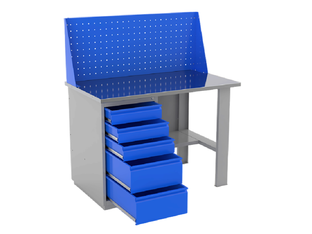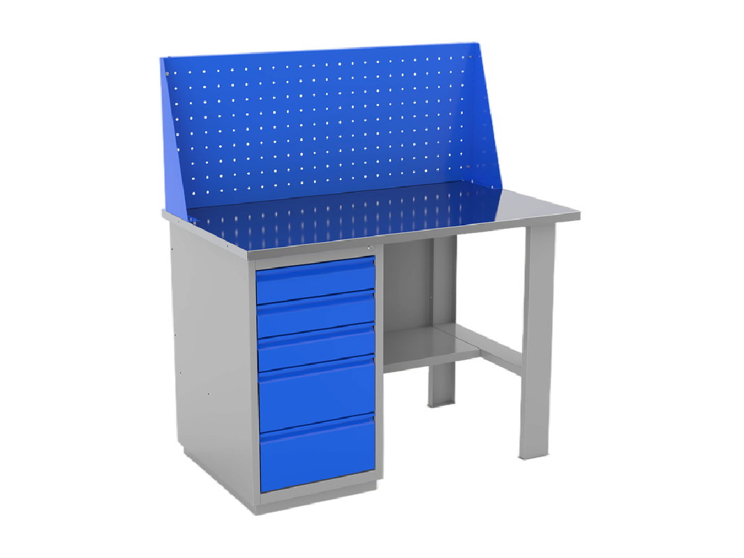 Верстаки серии ВС №420 — это многофункциональные столы, которые можно использовать для различных задач. Они подходят для слесарных, сборочных, рихтовочных, доводочных, монтажных, регулировочных, наладочных и столярных работ. Отличается наличием одной тумбы с пятью выдвижными ящиками разного размера. Установлена столешница с шириной 1400 мм. Экран продается отдельно и в стандартную комплектацию не входит.