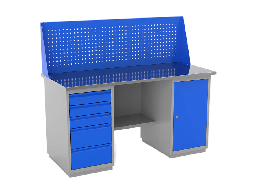 Они широко используются в производственных цехах, автосервисах, автомастерских и других производственных помещениях. Имеют модульную конструкцию, что позволяет адаптировать их под индивидуальные потребности каждого рабочего места. Они изготовлены из листового холоднокатаного металла толщиной не менее 1 мм, что обеспечивает прочность и долговечность. Рабочая поверхность верстаков выполнена из МДФ толщиной 22 мм и покрыта оцинкованным металлом для защиты от повреждений. Для запирания используются замки EUROLOCKS — надёжные устройства европейского производства.