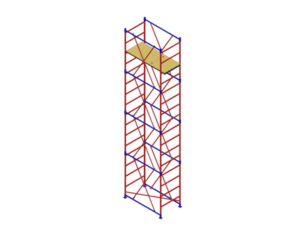 Вышка-тура с площадкой 700х1600 мм и максимальной высотой 6300 мм. Используется на строительных площадках как вспомогательное оборудование при выполнении строительно-монтажных, ремонтных и отделочных работ внутри и снаружи зданий и сооружений. При необходимости переместить всю конструкцию не придется ее разбирать, вышка оснащена специальными колёсами. Модель дополнена ограждением и прочным настилом с очень высокой грузоподъемностью в 200 килограмм. Конструкция выполнена таким образом, что все ступени являются несущими, можно установить настил на все ярусы с шагом в 38 сантиметров.