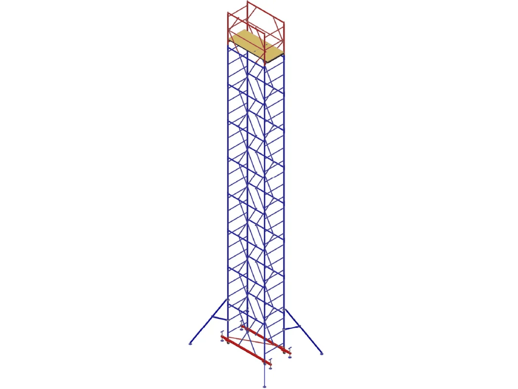Вышка-тура с площадкой 1000х2000 мм и максимальной высотой 11200 мм. Используется на строительных площадках как вспомогательное оборудование при выполнении строительно-монтажных, ремонтных и отделочных работ внутри и снаружи зданий и сооружений. При необходимости переместить всю конструкцию не придется ее разбирать, вышка оснащена специальными колёсами.