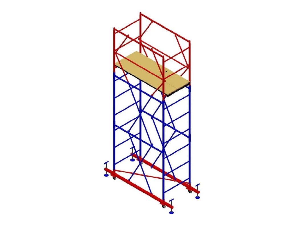Вышка-тура с площадкой 1000х2000 мм и максимальной высотой 4000 мм. Используется на строительных площадках как вспомогательное оборудование при выполнении строительно-монтажных, ремонтных и отделочных работ внутри и снаружи зданий и сооружений. При необходимости переместить всю конструкцию не придется ее разбирать, вышка оснащена специальными колёсами.