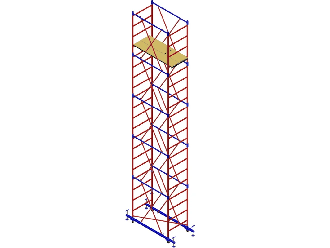 Вышка-тура с площадкой 1000х2000 мм и максимальной высотой 7800 мм. Используется на строительных площадках как вспомогательное оборудование при выполнении строительно-монтажных, ремонтных и отделочных работ внутри и снаружи зданий и сооружений.